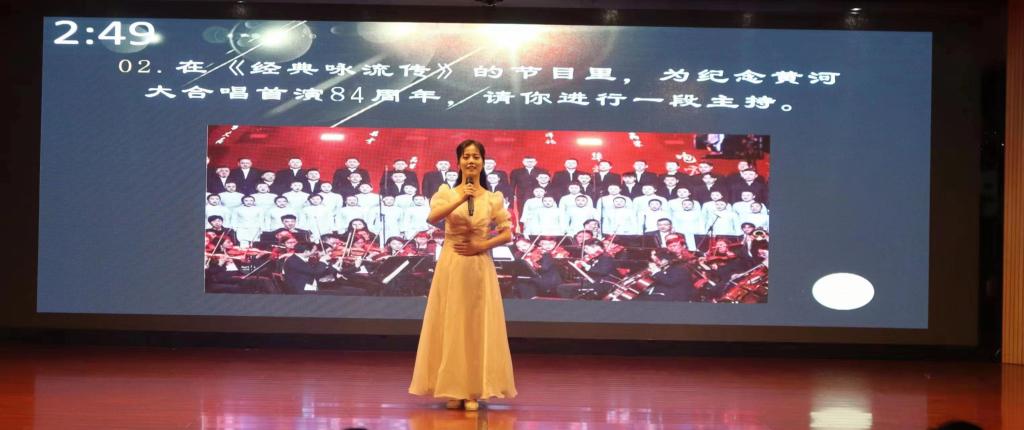 第三环节,该环节由参赛选手随机抽取情景内容,进行三分钟模拟主持。纵然比赛已近尾声,但选手们精彩绝妙、感染力极强的主持将比赛推上了新的高潮,在场全体观众全身心投入,目光全然集中于舞台中央。