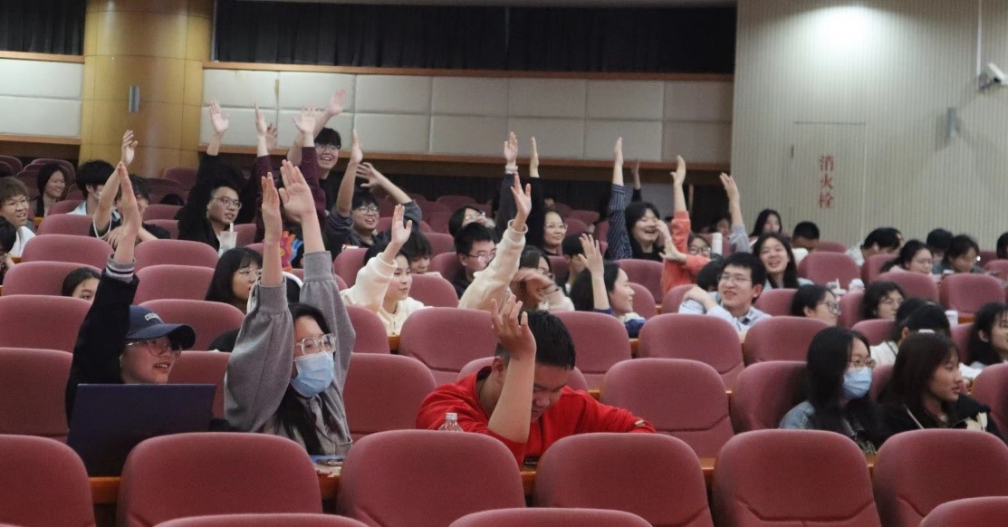 第二环节结束后,进入到激烈的有奖问答环节。问题围绕于我国国情、党的二十大以及今年会校史。观众们踊跃举手抢答,现场氛围高涨。