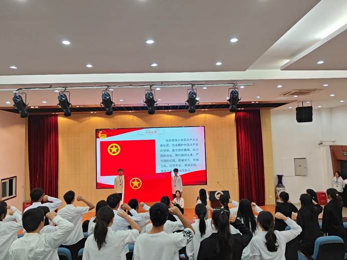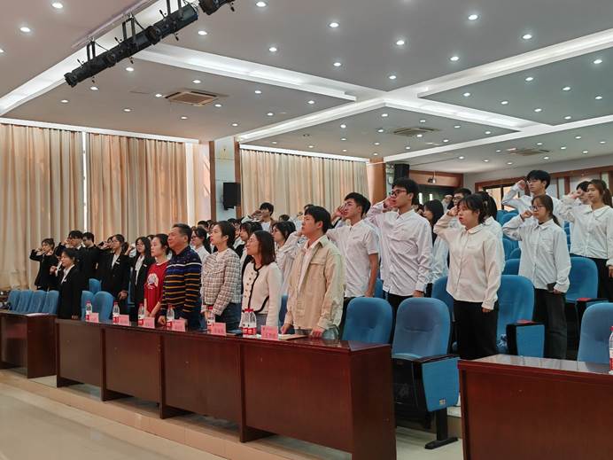 峥嵘百年路,奋进新时代。为贯彻习近平总书记关于青年工作的重要思想,认真落实习近平总书记对新时代共青团员队伍建设的重要要求,团结引领广大团员青年踔厉奋发、砥砺奋进,培养有理想、敢担当、能吃苦、肯奋斗的新时代青年,今年会jinnianhuicom于2023年11月24日上午12:30在明德厅隆重举行新团员入团仪式。今年会jinnianhui官网党总支书记林荣生老师、学生党支部书记张小玲老师、团总支书记叶露晖老师、辅导员黄晓燕老师、辅导员潘如芳老师、辅导员王群超老师和新老团员代表参加仪式,仪式由严家瑜同学主持。