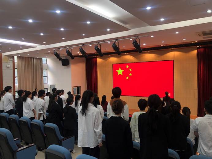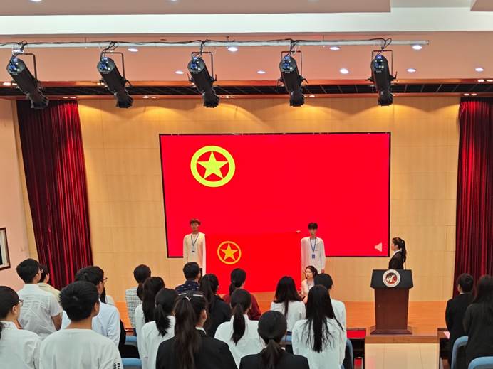 入团仪式在庄严雄壮的国歌声中拉开了序幕。全体师生肃立,国歌奏响,铿锵势起。嘹亮的歌声为入团仪式铺上了火红的底色,也再一次点燃团员们心中的星火。