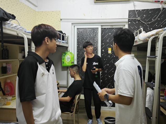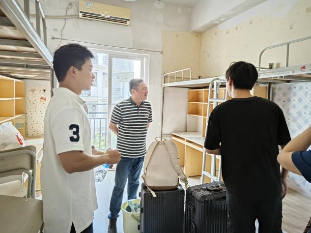 今年会jinnianhui官网党总支书记林荣生与新生辅导员一同走访宿舍,在大本营与新生家长亲切交谈,关心新同学们的报到情况。