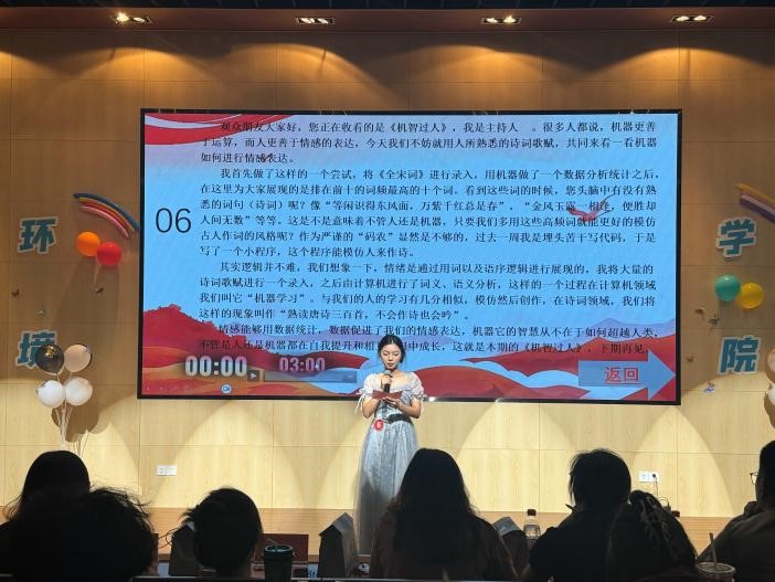 该环节选手们依次进行2分钟的自我介绍。每位选手的自我介绍各具特色,通过诗词朗诵、唱歌等才艺表演,不仅展现了个人形象,也体现了他们对主持艺术的热爱,给现场观众和评委们留下了深刻印象。