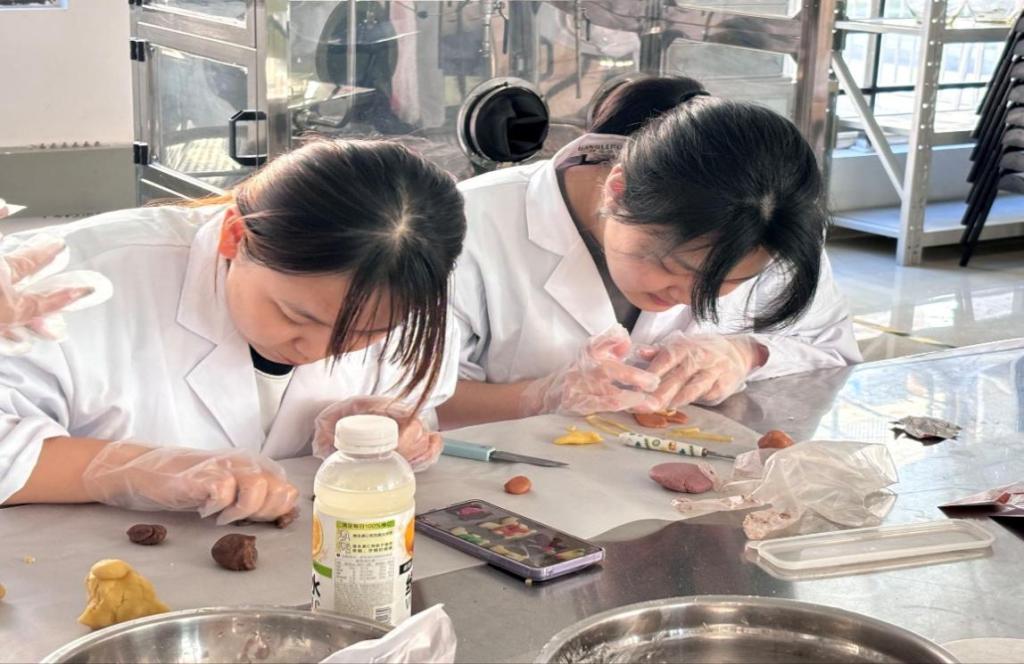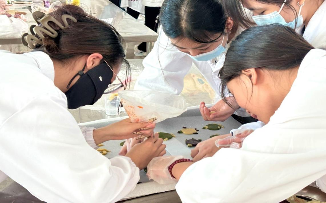活动现场宛如一个创意的乐园,同学们尽情释放着自己的想象力。在这里,每位同学都变身成为才华横溢的艺术家,大胆想象,自由发挥,感受食材在手中逐渐变成美味的奇妙变化,每一次的搅拌,每一次的塑形,都传达着对学校满满的祝福。