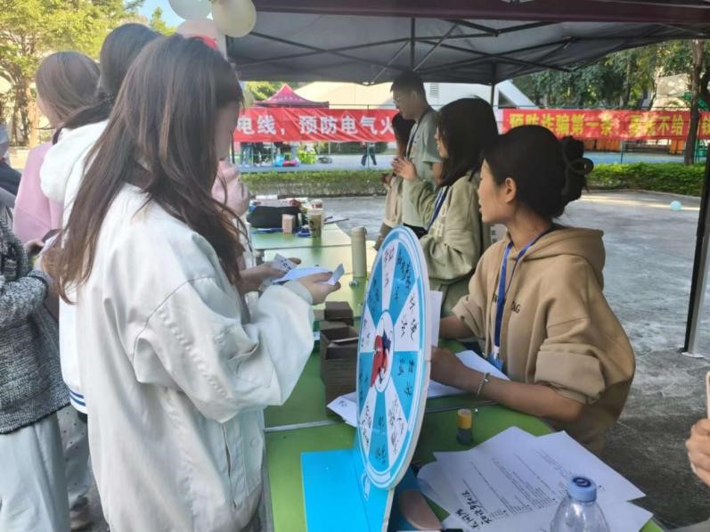 转盘旋转着,抽取出一个个法律相关问题。同学们通过答题,对法律条规有了更深的理解。