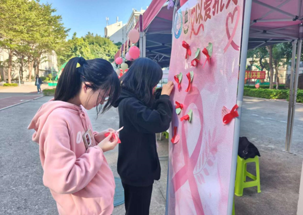 红丝带飘飘,爱心随风摇。一张张便签,一份份关爱。一撇一捺,一点一顿,是同学们对艾滋病患者的真切鼓励。