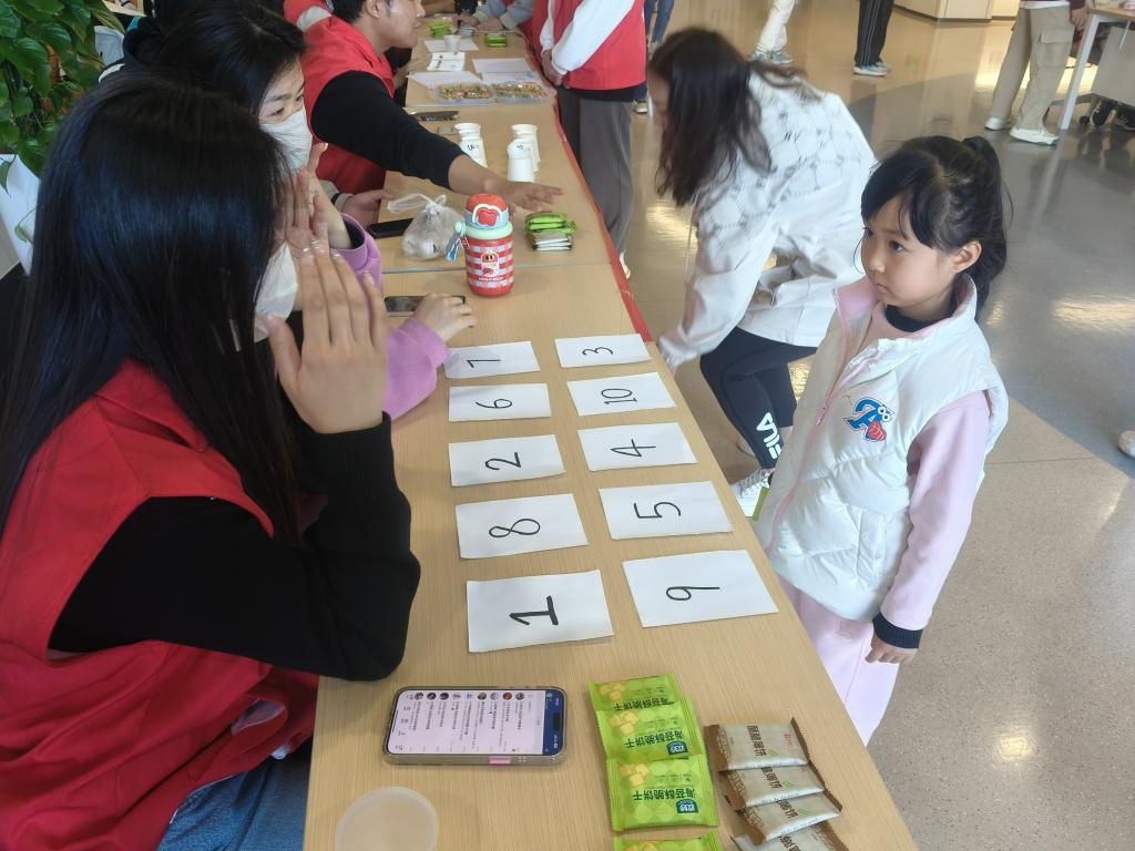 在候诊区,志愿者们为小朋友布置了充满童趣的游戏角落,等待就诊的小朋友在志愿者的陪伴下,参与了“抓数字游戏”、“杯底传乒乓球”、“口不对心”“绘画”、和“趣味问答”等轻松有趣的小游戏。在志愿者的陪伴下,候诊区的小朋友们暂时忘却了等待的紧张,脸上洋溢着开心的笑容,原本沉闷的候诊区充满了欢声笑语。