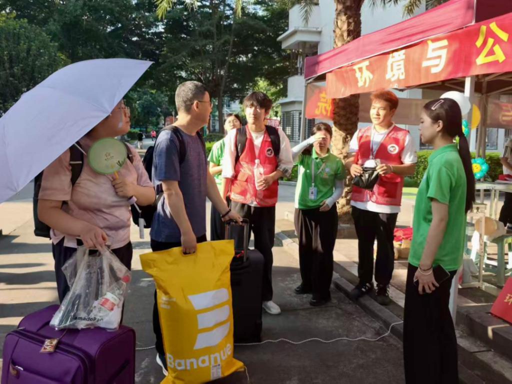 志愿服务帮扶,传递温暖力量。以团学干部为主体的志愿者积极参与迎新工作,他们热情满满,耐心解答新生和家长的各种问题,为新生提供全方位的帮助。在校园的各个关键位置,都能看到志愿者忙碌的身影。志愿者们用热情和耐心,让新生们感受到家一般的温暖, 家校联系合作,共筑成长桥梁。迎新期间,学院还注重加强与家长的沟通与合作,通过多种方式搭建家校联系的桥梁。在新生报到点安排专人解答家长的疑问,家校携手为新同学创造良好的学习和生活环境,也展现了环境学子的良好精神风貌。