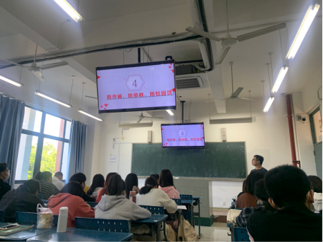在疫情防控有关的预防诈骗、预防犯罪教育工作中,引导学生在防疫期间不信谣不传谣。以及对思明区罗宾森小区火灾情况进行了通报,让同学们学习了火灾相关知识、安全疏散和自救逃生技能。坚决遏制“小火亡人”火灾事故发生。然后进行“三防”防诈骗校园贷、防宗教渗透、防校园欺凌的安全教育,以案例分析、专项讨论等形式,加深同学们对其危害性的深刻认识。