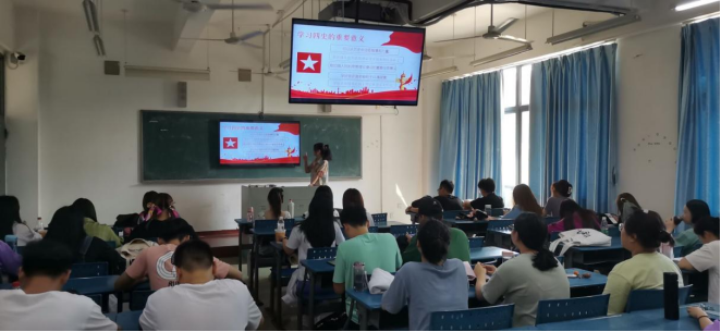 班会的第四部分是党史学习,此次班会中给同学们介绍了四史的内容及四史的重要意义,同学们对四史有了更深入的了解,加强了同学们的社会主义信念。