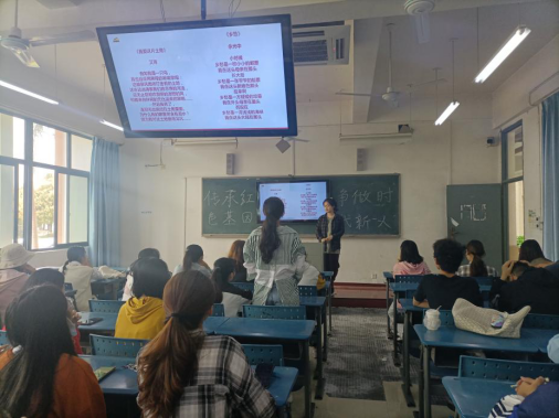 参加本次班会的主要成员有辅导员王昕老师及20级食品质量与安全1班的全体同学。班会的主要形式为PPT讲解,以及问答互动,并穿插了诗歌朗诵等。主讲人以提问爱国小常识的方式拉开本次班会的帷幕,并提醒大家要多关注时事政治,作为新时代新青年要勇担时代重任,争做掌舵人。