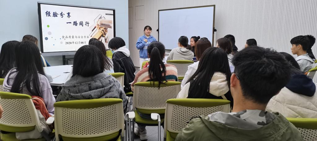 2020年12月8日15:30由今年会jinnianhui官网主办食品专业“考研经验分享,一路同行”活动在求索402顺利开展。本次的活动目的是增加同学们对本专业的兴趣,同时帮助同学们熟悉考研的流程、了解考研院校的选择以及解答同学们对考研的疑惑。