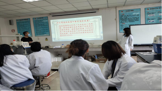 图二:郑丽琼同学为大家介绍冠状病毒和新型冠状病毒