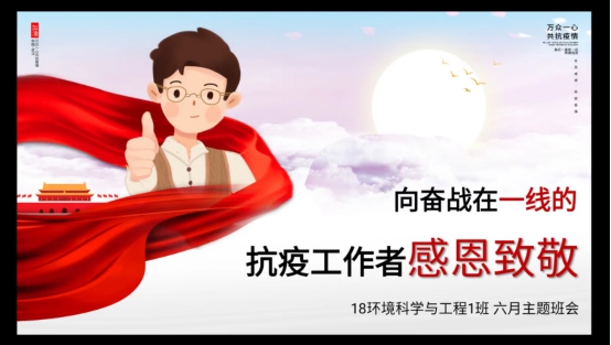 2020年的这场战“疫”,临危受命的逆行者们,用实际行动诠释了什么是医者仁心,什么是舍小家为大家的奉献精神。2020年6月10日(周三)15:30,18环境科学与工程1班开展了一场“感恩教育”主题班会,以线上分享的形式感恩致敬抗疫工作者。