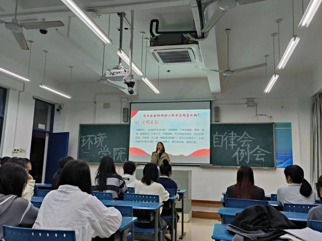 自律会指导老师黄晓燕老师从学校概况、历届校领导、校训校歌、“一站式”学生社区建设、学生反馈渠道等多方面作重点知识解读。黄老师强调“迎评工作已到了冲刺阶段,大家要凝心聚力走好最后一公里路”。与此同时,黄老师要求自律会每位成员都要起带头模范作用,从自身做好,从自己做起,以最好的精神面貌迎接本次评估。