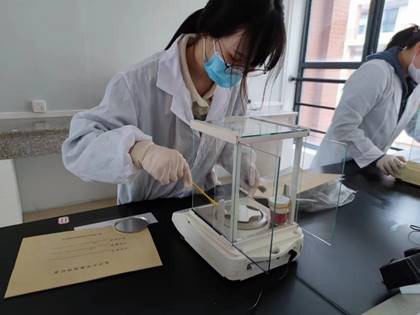 志愿者们擦拭分析天平