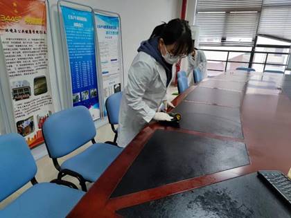 志愿者们正擦办公桌