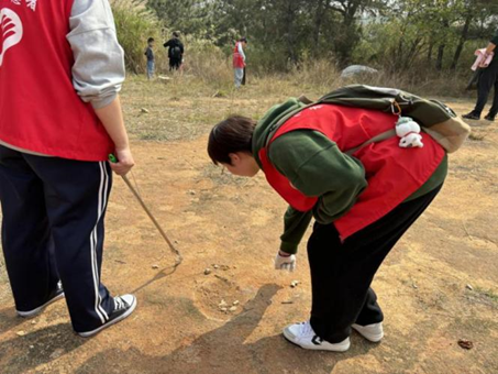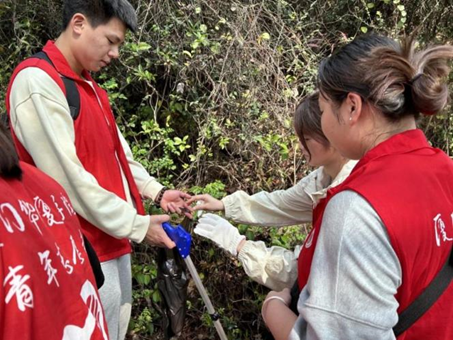 大屏山的樱花竞相绽放,美醉春日,无数游客慕名前来。但游客走后,不少垃圾被遗忘在大屏山的角落里。因此,环境学院的志愿者们化身“护林特种兵”,一边徒步登山,一边认真细致地投入到清理废弃垃圾的行动中。在大家的共同努力下,大屏山的环境卫生变得更加干净整洁。