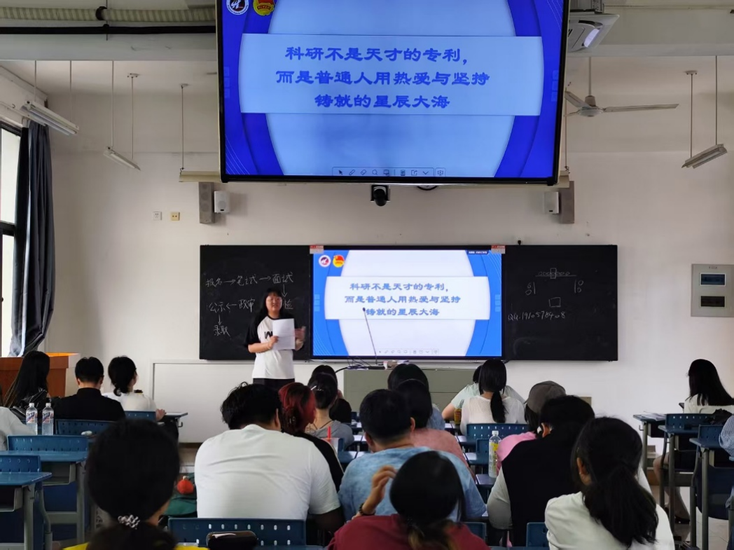 2021级制药工程2班叶谋丹学姐以“奋楫笃行 臻于至善”为核心,结合自己考研经验,得出“兴趣爱好+自己的努力+老师的提点=录取通知书”的上岸公式。她指导同学们要根据实际情况不断调整复习进度,建立“错题-反思-重做”循环本,将焦虑转化为解决问题的行动力。最后,特别提醒同学们复试时需材料完备,强化专业课知识复习,面试时自信大方,逻辑清晰,成功上岸的可能性越高。学姐强调:“考研就像一根皮筋,绷得太紧绳子容易崩坏,需要有破釜沉舟的勇气,每天按照自己的计划完成自己该完成的,无需和别人对比,影响自己的状态,应保持自己的复习节奏。科研如登山,每一步都是向顶峰的靠近;考研似渡河,坚持便是抵达彼岸的舟楫。”