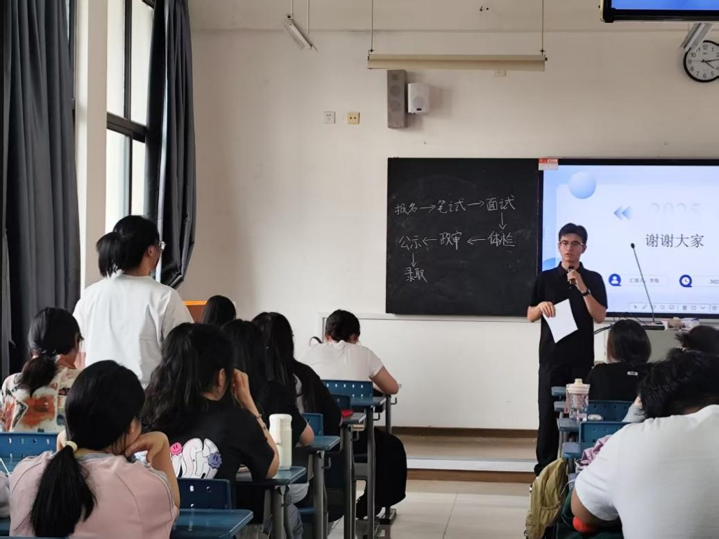 在互动环节,同学们积极提问,现场气氛十分活跃。同学们纷纷表示:“通过本次分享会,听了学长学姐们的分享,深受鼓舞,更加坚定了自己的考研决心,不仅获得了实用的备考技巧,还学会了如何调整心态,以更加积极的心态面对考研和考公的挑战。”
