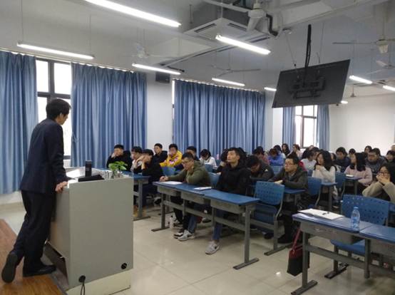 图为:厦门佰翔空厨食品有限公司品控经理黄义松为同学们开展讲座