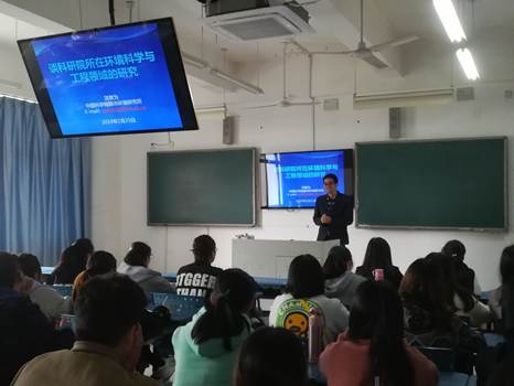 洪有为博士先是给学生们简单介绍了中国科学院城市环境研究所所的发展历程、人才队伍、科研平台。接着从关于环境科学与工程专业学什么?它的发展方向有哪些?擅长做什么?几个问题引发同学们思考,深入浅出的给学生介绍了环境专业所需要的基本专业知识,就业方向,还教导我们学生在学习专业知识的同时,还要加强自身素养。整场报告内容充实,洪有为博士的讲座耐心细致、科学严谨,同学们积极参与、认真思考,报告在同学们热烈的掌声中落下帷幕。