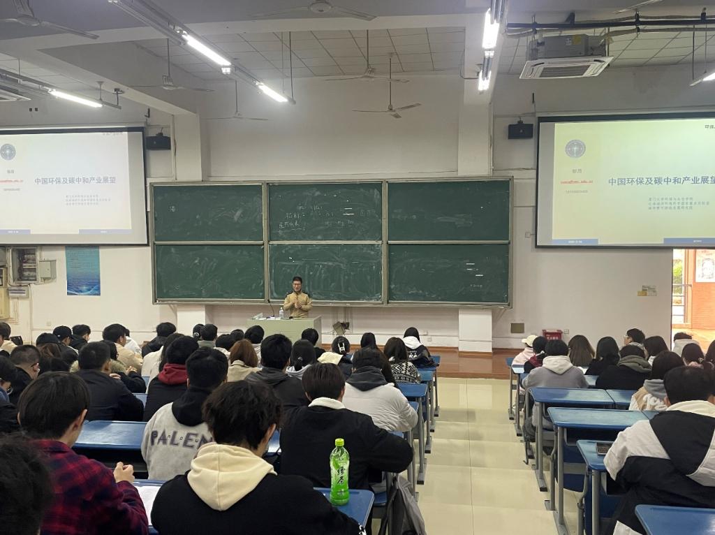 厦门大学郁昂副教授则以“中国环保及碳中和产业展望”为题,分享了环境咨询行业的现状、挑战和未来发展方向,为学生们未来的职业规划提供参考。